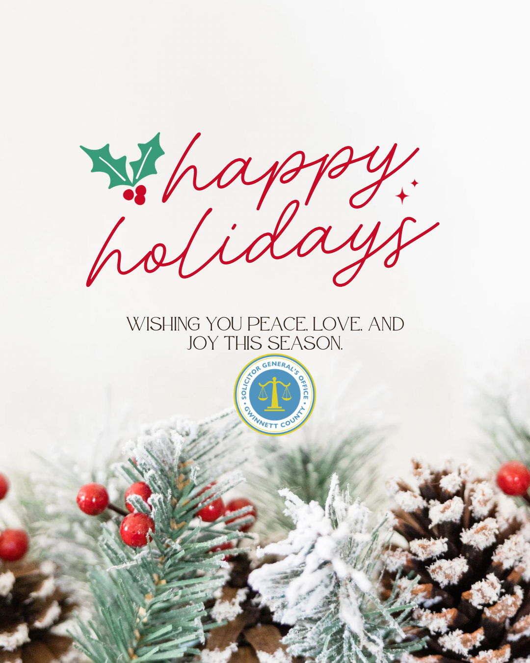Wishing you all peace, love, and joy this season. Happy Holidays from the Gwinnett County Solicitor General’s Office