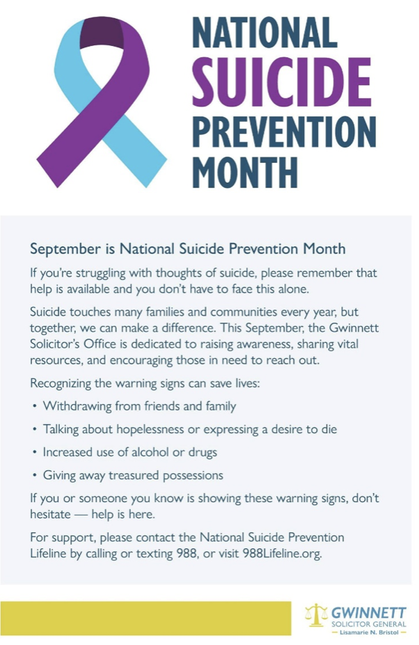 The Gwinnett Family Violence Task Force and the Gwinnett Solicitor’s Office will host a collection drive in recognition of Domestic Violence Awareness Month. Community members are invited to donate requested items to...
